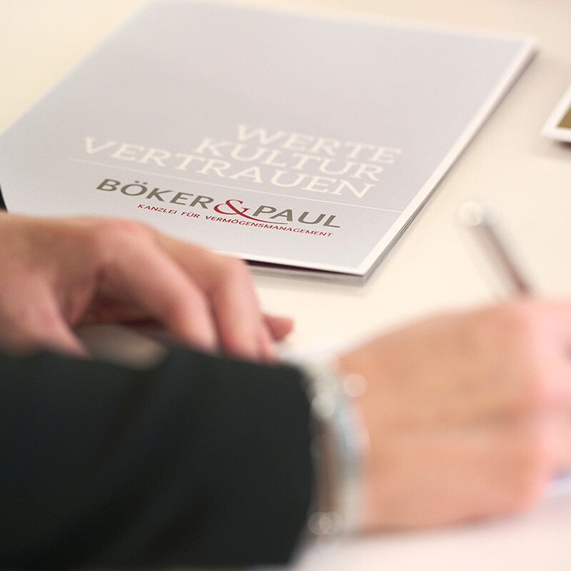 Holen Sie dann professionellen Rat ein. Bei Böker & Paul begleiten speziell ausgebildete und zertifizierte Nachfolgeberater Sie und Ihre Familie durch den gesamten Prozess. Unsere Finanzplaner behalten dabei Liquidität und Versorgung im Blick. Auf Wunsch arbeiten wir eng mit Ihrem Steuerberater und Anwalt zusammen.